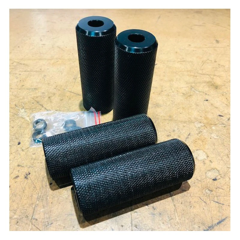 Nos nouveaux Pegs Aluminium cannelurés sont usinés dans la masse Aluminium 6061-T6 pour une accroche optimum. Compatible avec les axes de 14mm mais également en 10 mm puisque fournis avec des rondelles/adaptateurs. Design hyper polyvalent pour plaire à tous: Top pour le BMX Flatland, pour transporteur la copine à l’arrière ou pour les anas de Swerve en Wheelie bike!