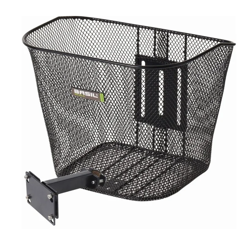 BREMEN, panier avant, acier, mailles fines, non-amovible Avec l’attache fixe Basil Permanent II Stemholder Avec une clef Alen (fournie) , pour tubes de guidon de 22-26mm Ø, panier réglable en hauteur, noir Le panier mesure 34 cm de large, 25 cm de long et 27 cm de haut : il peut accueillir un volume de 22 litres d’affaires pour une charge maximal de 5 kilos.