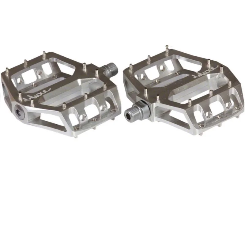Le retour des fameuses Pédales Deluxe F-Lite Alus, LA pédale de champs de bosses inspirée par la Shimano Dx et fabriquée par la meilleure usine: Wellgo. Usinée cnc dans de l’Aluminium 6061-T6, Axe crmo 9/16ème utra résistant, Roulements scellés de précision et x10 pins remplaçables alliés à juste ce qu’il faut de Concave et vous aurez la meilleure pédale Alu du marché.