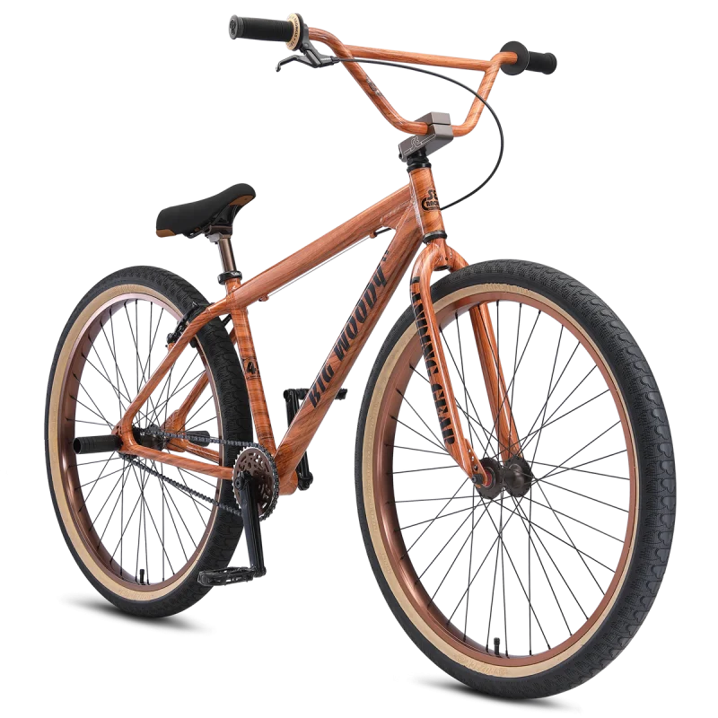 Le SE BIKES BIG RIPPER 29″ WOOD GRAIN 2022 est toujours proposé avec un Mono-vitesse, monté avec des V-brake (possibilité de monter des freins hydraulique Magura HS11 ou Magura HS33 pour plus de toucher quand vous levé) livré avec les pegs et monté avec les pneus Se Bikes Bozack en 2.40″.